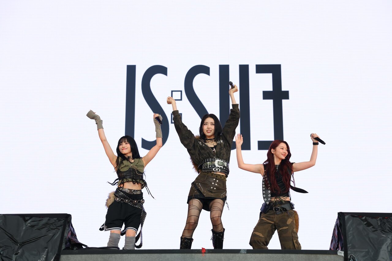 トップバッターを務めたのは、新世代ガールズグループ・IS:SUE。フェスの幕開けを飾った1曲目は、強烈に鼓膜を刺激するビートが特徴の楽曲「Breaking Thru the Line」。登場から深く被ったフードを一人ずつ外し新しいビジュアルを公開すると会場からは歓声が上がり、勢いそのままパワフルなラップと堂々としたパフォーマンスで観客を引き込みました。